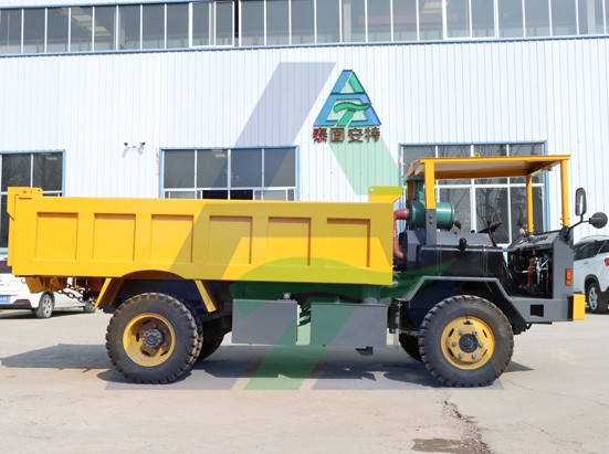本車型是為適應以平巷為主,巷道窄,高度較矮的礦井設計的,整體車架,前后橋驅動,前輪轉向。選用帶副檔變速箱,配玉柴4102發動機;變速幅度大,抵擋大扭矩大牽引力,速度高節省時間。加裝水過濾有效降低排放。 采用氣助力離合裝置,輕松有效可靠;液壓助力轉向裝置,操輕松靈便;雙油缸自卸裝置,平穩高壽命;井下運礦車專用板簧,耐用可靠。