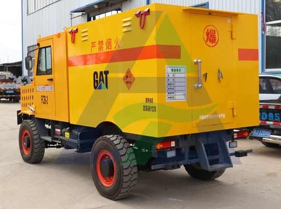 本產品是有固安特公司嚴格按照國家標準GB 21500—2008;Q/GAT 10—2019自行設計、制造的一款專門服務非煤礦山井下運費爆破器材的箱式柴油運輸車。產品選用玉柴國三排放的YC4DK90型發動機,功率90馬力。本型柴油機噪音低,排放好,扭矩大,功率儲備大。采用美國德納技術的雙制動系統濕式制動橋,四輪驅動,通過性好;雙制動系統,安全可靠;輪邊減速,驅動力大爬坡能力強。雙變型液力驅動,操作簡便;扭矩大。由通過公安部授權檢測通過的專業生產廠家制造的器材運費廂,安全性強,可靠性高。雙駕乘人員設計,有效解決押運員隨車問題。空氣減震+彈簧板組合方式,即解決了駕乘舒適度問題也適應了車輛自重大的問題。全液壓轉向,操作輕便。貴金屬催化及特制水過濾裝置雙重發動機尾氣處理,有效降低排放物標準發動機前置長頭型,有效防護駕駛員安全;選裝空調;軟包內飾,降噪美觀。