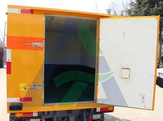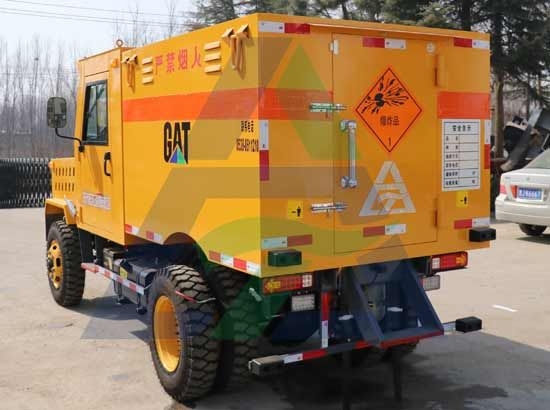本產品是有固安特公司嚴格按照國家標準GB 21500—2008;Q/GAT 10—2019自行設計、制造的一款專門服務非煤礦山井下運費爆破器材的箱式柴油運輸車。產品選用新柴國三排放的4D27G31 型發動機,功率50馬力。本型柴油機噪音低,排放好,扭矩大,功率儲備大。采用彈簧制動液壓釋放濕式制動橋,四輪驅動,通過性好; 高低速機械變速箱,變速幅度大、低速驅動力大、操作簡便;維護簡單。由通過公安部授權檢測通過的專業生產廠家制造的器材運費廂,可靠性高。雙駕乘人員設計,有效解決押運員隨車問題。空氣減震+彈簧板組合方式,即解決了駕乘問題也適應了車輛自重大的問題。 貴金屬催化 裝置雙重發動機尾氣處理,有效降低排放物標準發動機前置長頭型,有效保護駕駛員;選裝空調;軟包內飾,降噪美觀。